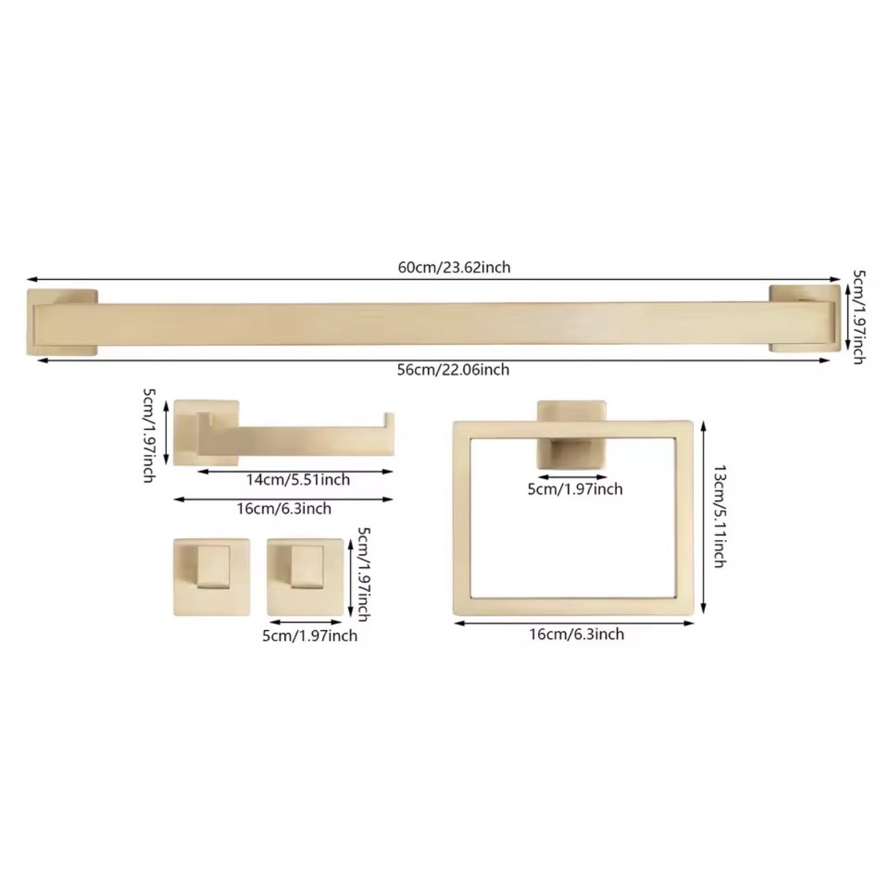 NARON Σετ πετσετοκρεμάστρες μπάνιου ανοξείδωτο ατσάλι 5τμχ NR6043 Brushed Gold
